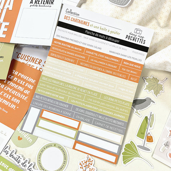 Planche de mots à découper - Des châtaignes et une boîte à goûter - Dans Mes Pochettes
